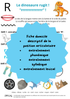 Affiche à télécharger et à imprimer permettant l'entraînement du phonème "R" en position initiale, thème dinosaure.