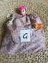 La démarche se veut éco-responsable puisque les babioles sont des jouets upcyclés et les sacs cousus main à partir de tissus seconde main. Les éléments sur photo sont donc des exemples. Le principe est le même pour chaque commande mais les éléments fournis varient.